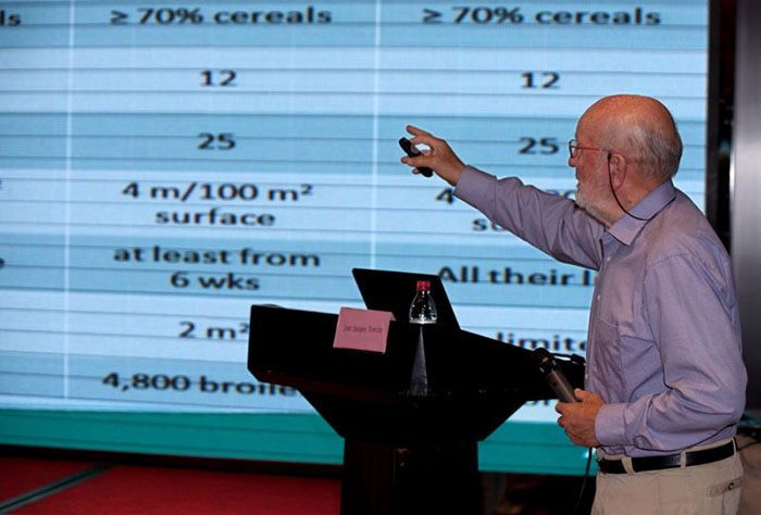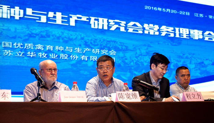 5月21日,科朗育種顧問,法國哈伯德公司育種專家Jean-Jacques.Trevidy、科朗集團副總經理潘國健先生出席了中國優質育種與生產研究會常務理事會,其中,Jean-Jacques.Trevidy作為育種方面的專家,受邀做專家報告,報告圍繞歐洲優質雞育種的過去、現在和將來展開,結合我國黃羽肉雞的發展及現狀,分析了育種技術在我國的應用等問題。同做報告的還有中國農業科學院家禽研究員陳寬維,江蘇某公司副總裁張先生。