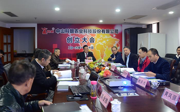 為進一步推動公司市場化改革,打通資本化、證券化通路,依托資本市場籌集資金支持產業發展,實現公司管理水平、資產質量、經營效益及企業品牌的全面提升,科朗于2015年全面啟動新三板上市籌備工作,在政府及社會各界的支持下,股改于今年年初順利完成。1月30日,公司隆重召開了“中山科朗農業科技股份有限公司創立大會”,會議審議通過了《中山科朗農業科技股份有限公司章程》等議案,選舉產生了第一屆董、監事會成員,分別選舉了、聘任了公司董事長、監事會主席、總經理等高級管理人員。