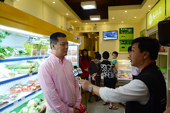 我家農場小欖店店長李文鋒先生接受電視臺采訪
