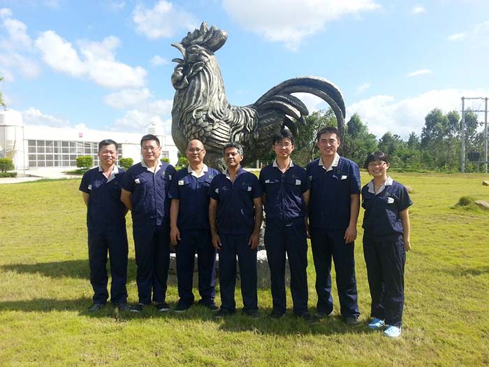 泰森食品卡西夫一行首先在副總裁黃國潤等人的陪同下參觀科朗集團旗下臺山市賽科農業技術有限公司。作為深圳市賽諾菲巴斯德(法國)生物制品有限公司在中國的唯一胚蛋供應商,賽科實現了全方位的自動化、標準化養殖生產,脫離了勞動密集性的養殖模式,降低了人為因素而導致的疾病、管理失誤等風險。賽科的專業化程度,讓一向挑剔的泰森公司人員也贊不絕口。4日,卡西夫一行來到科朗集團小欖小欖總部,與集團總裁鄭秋煊、副總裁袁春申、黃國潤等公司領導進行了親切交談。泰森食品公司人員表示,科朗養殖場已經展示出高度的標準化和專業化,在麻黃雞方面所取得的成就有目共睹,泰森與科朗在質量管理上有很多相似的理念,非常有利于雙方今后開展合作,希望雙方能夠有進一步的交流,并期待能夠達成合作。