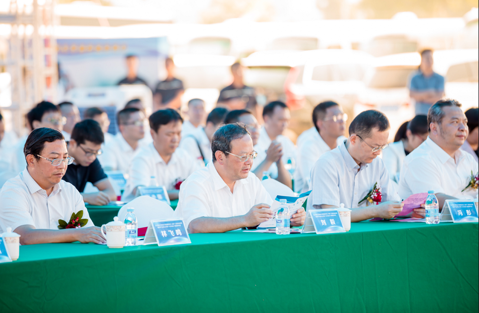 儀式上,劉毅、馮彤、林飛鳴、李惠文、謝少謀、黃偉紅、李健慈等領導和開工企業代表共同推桿,宣布包括科朗食品加工項目在內的8個項目開工建設、2個項目竣工投產,并手握鐵鍬,親自為科朗食品加工項目奠基,預祝項目順利完工,早日投產創收。