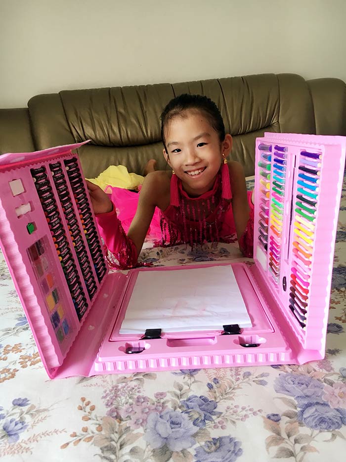 “好漂亮的畫筆啊,我覺得我已經(jīng)是神筆馬良了”孩子們收到禮物,無不開心異常,彈琴的彈琴,畫畫的畫畫,馬上就進(jìn)入了角色。
